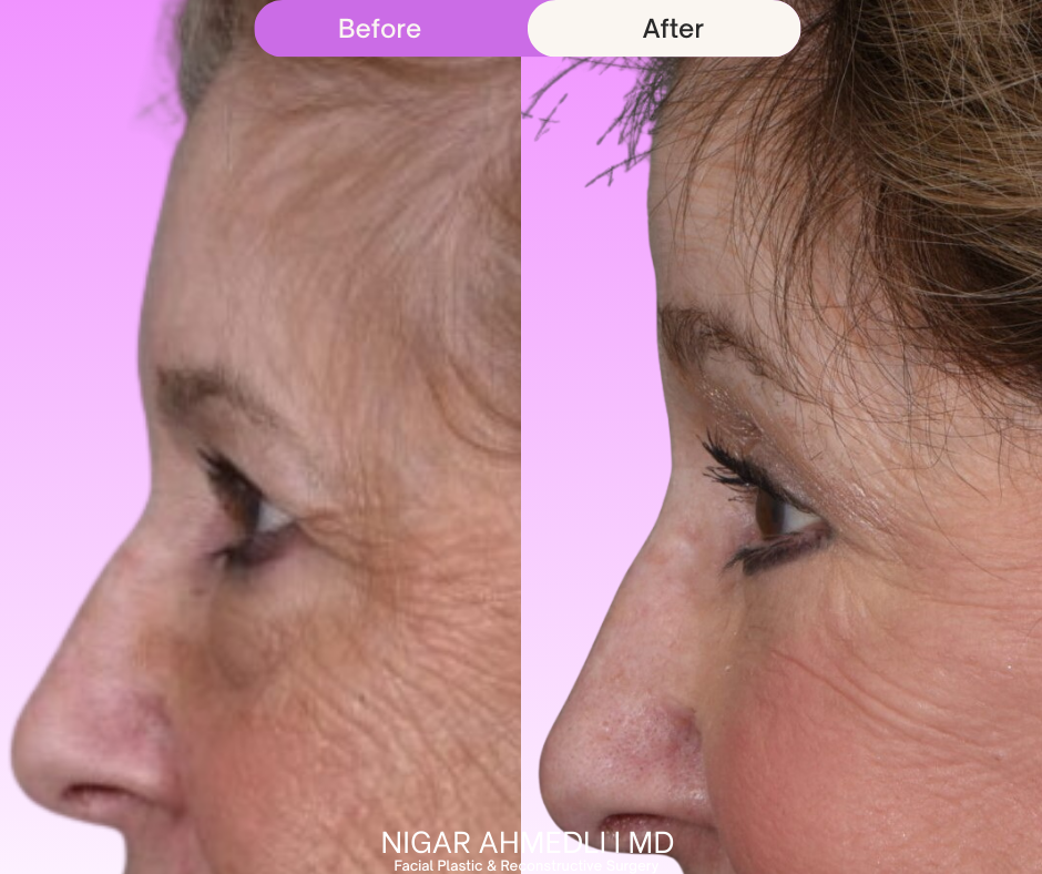 In consultation, Dr. Ahmedli evaluates brow position, eyelid skin, muscle tone, and the shape of your eye. The plan is designed to look natural and avoid an overcorrected result.